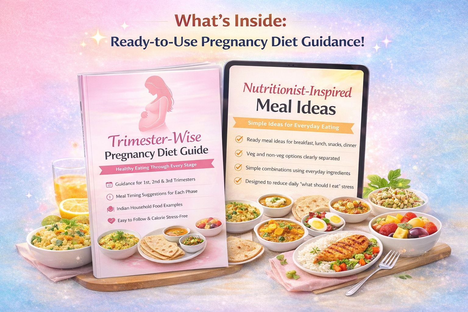 This digital kit brings together trimester-wise diet guidance, meal ideas, planners, checklists,